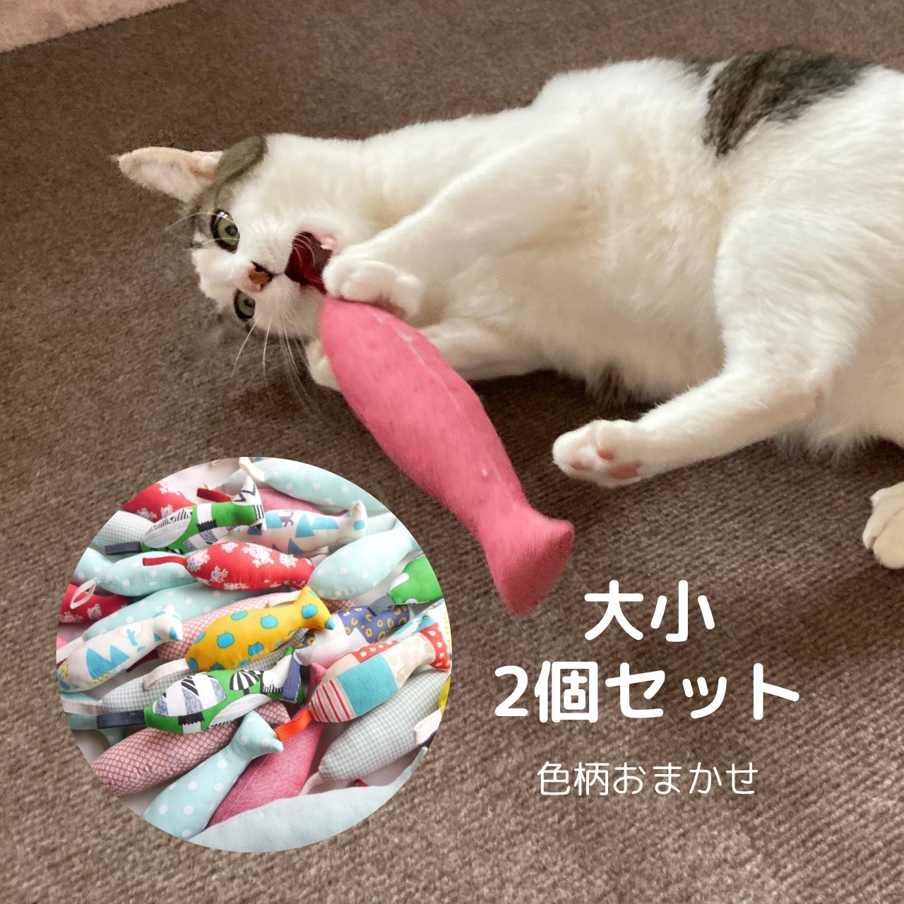 猫ちゃんたちに楽しんでもらえるサイズで見た目も可愛いお魚の形にしました。